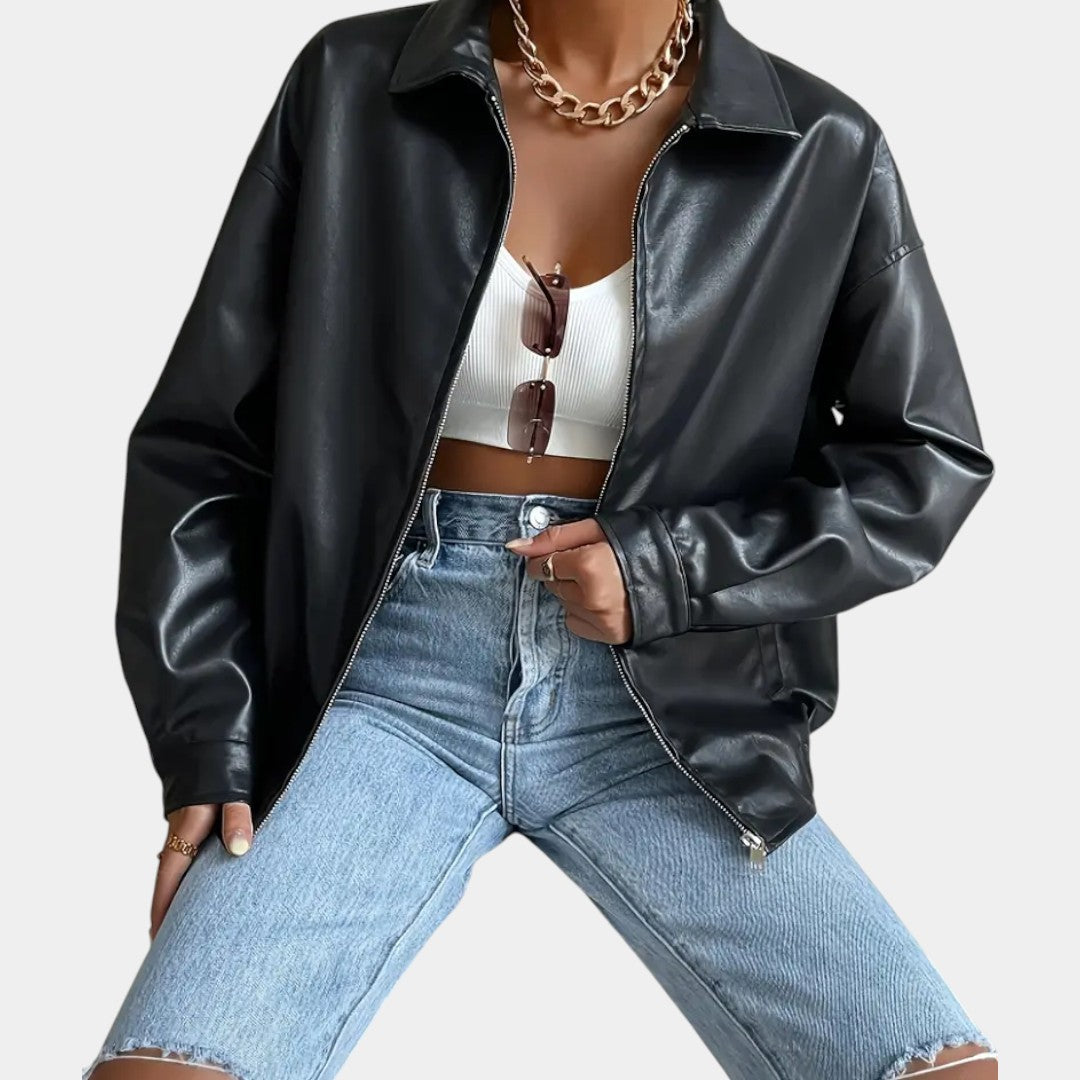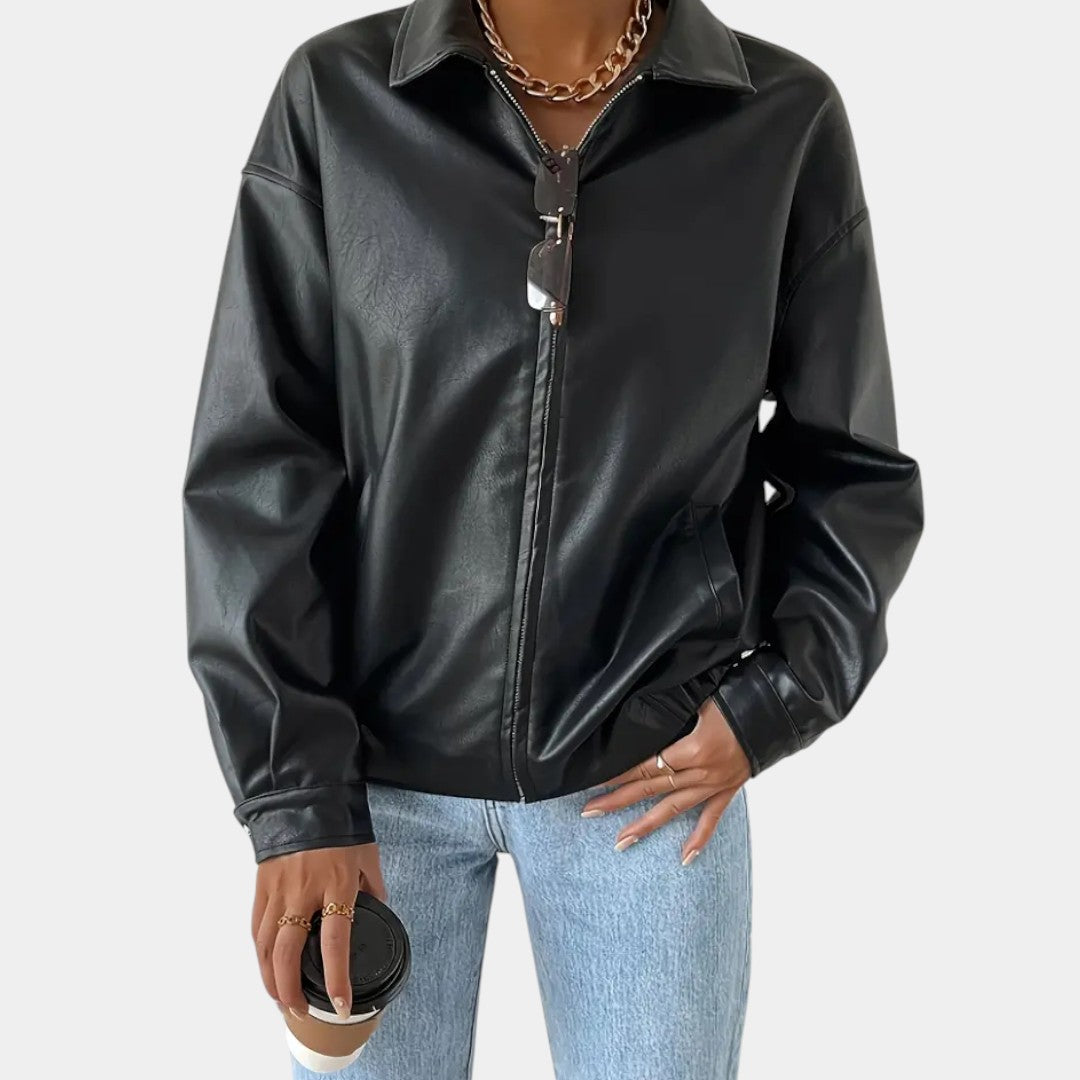 Minimalistická bunda z ekokože s moderným vzhľadom